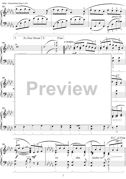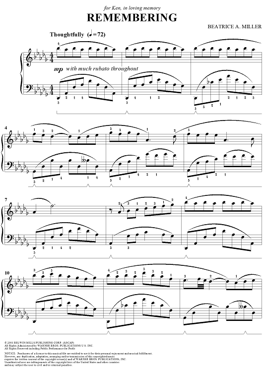 Digital Sheet Music for Remembering by Beatrice A. Miller scored for Piano Solo; id:292755