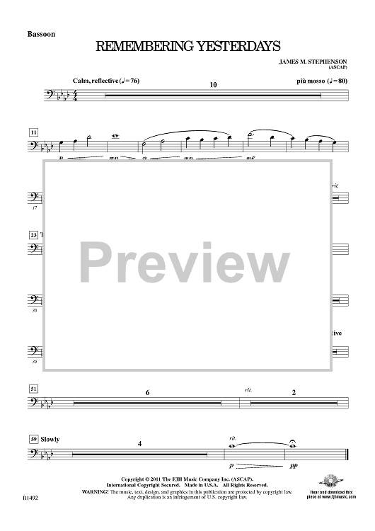 "Remembering Yesterdays - Bassoon" Sheet Music by James M. Stephenson