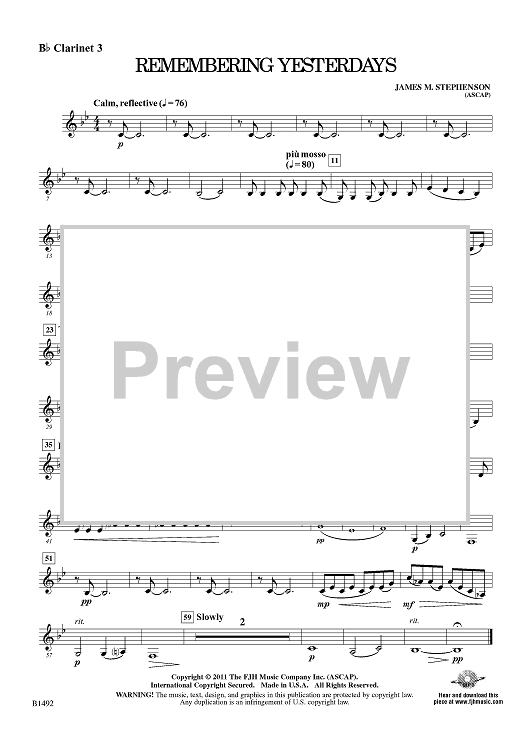 "Remembering Yesterdays - Bb Clarinet 3" Sheet Music by James M. Stephenson