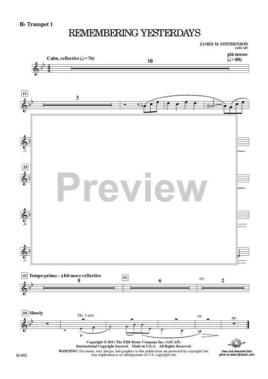 "Remembering Yesterdays - Bb Trumpet 1" Sheet Music by James M. Stephenson