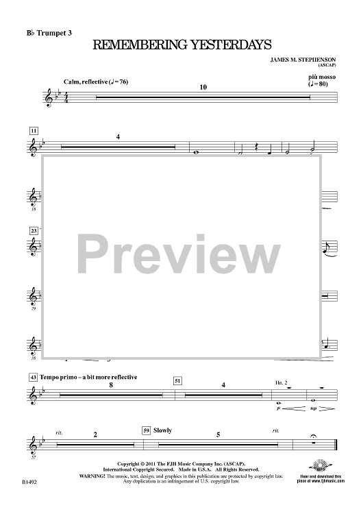 "Remembering Yesterdays - Bb Trumpet 3" Sheet Music by James M. Stephenson