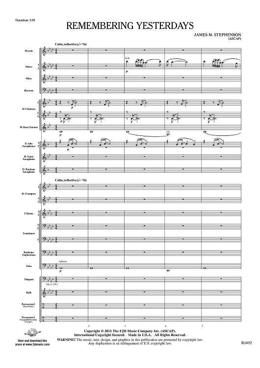"Remembering Yesterdays - Score" Sheet Music by James M. Stephenson