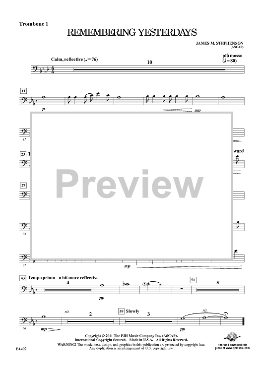 "Remembering Yesterdays - Trombone 1" Sheet Music by James M. Stephenson