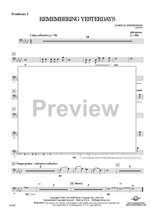 "Remembering Yesterdays - Trombone 2" Sheet Music by James M. Stephenson