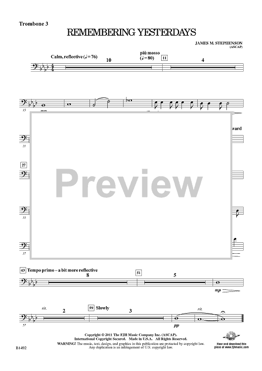 "Remembering Yesterdays - Trombone 3" Sheet Music by James M. Stephenson