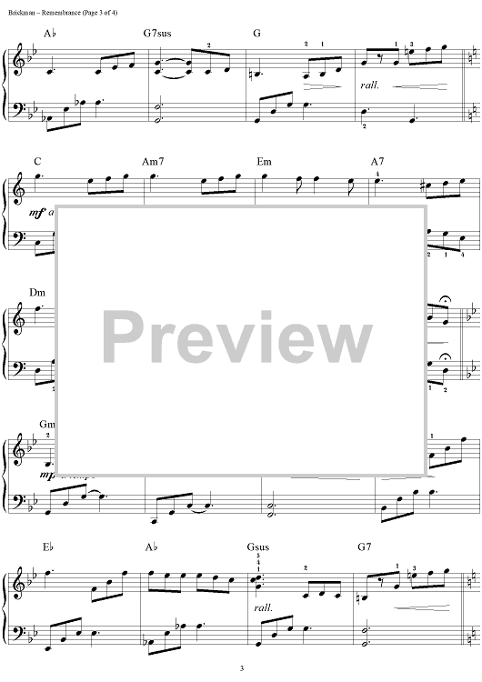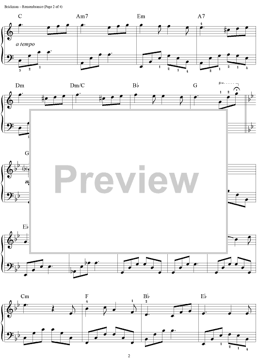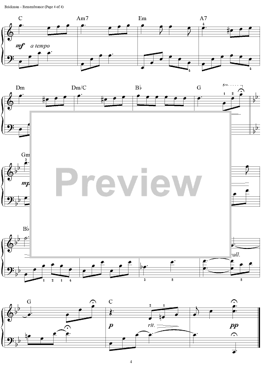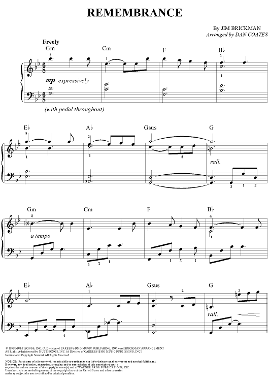 Digital Sheet Music for Remembrance by Jim Brickman, Dan Coates scored for Easy Piano; id:286763
