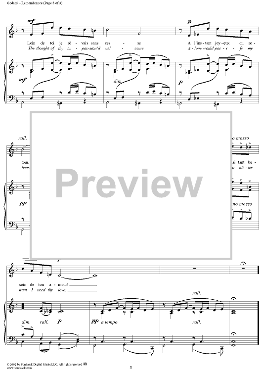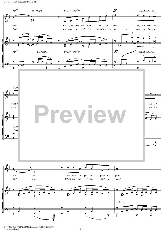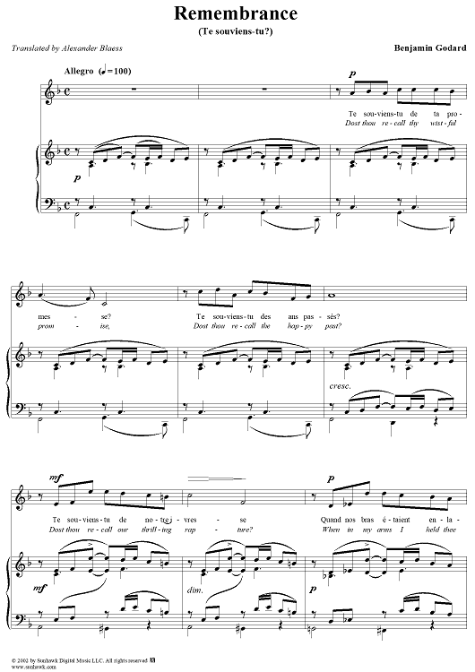 Digital Sheet Music for Remembrance (Te Souviens-Tu?) by Benjamin Godard scored for Voice/Piano; id:269439