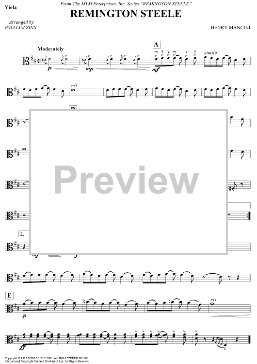 "Remington Steele - Viola" Sheet Music by Henry Mancini