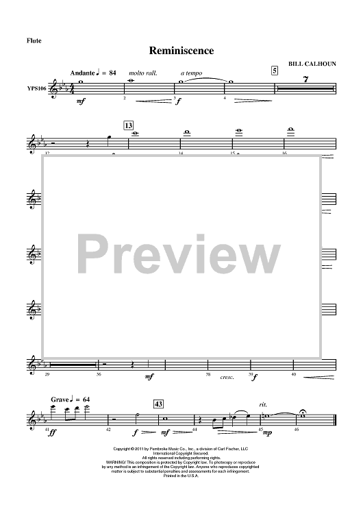 Digital Sheet Music for Reminiscence - Flute by Bill Calhoun scored for Concert Band; id:431318