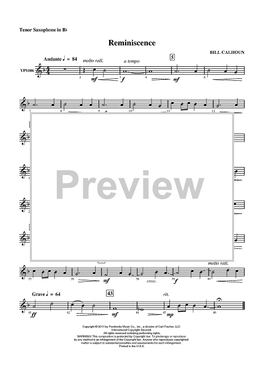 "Reminiscence - Tenor Sax" Sheet Music by Bill Calhoun