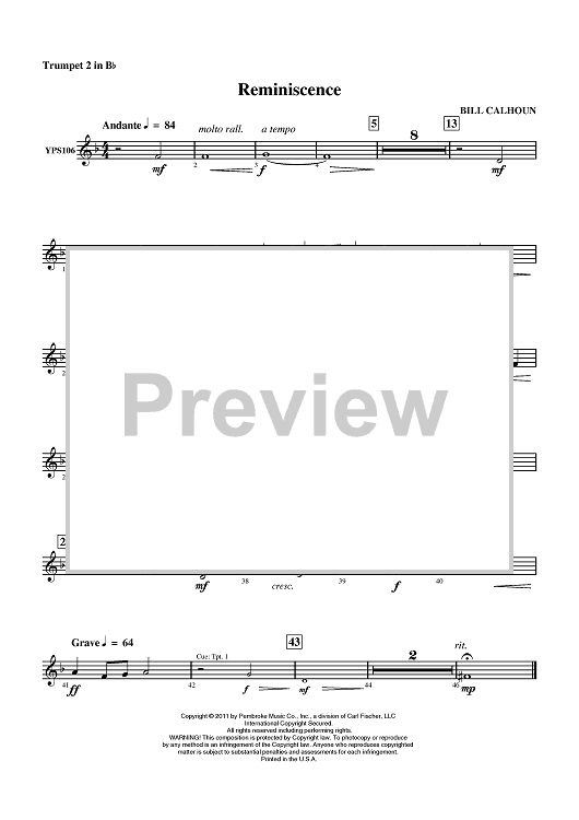 Digital Sheet Music for Reminiscence - Trumpet 2 in Bb by Bill Calhoun scored for Concert Band; id:431328