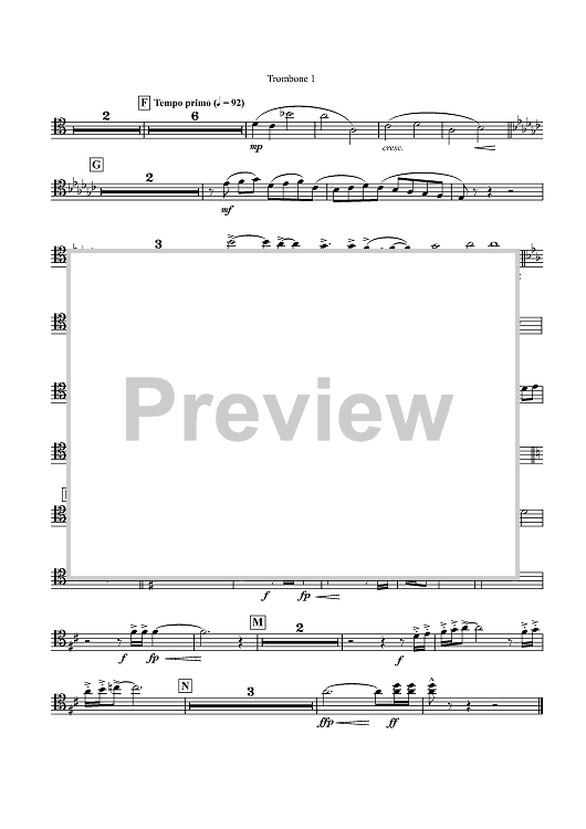 Digital Sheet Music for Remnants of a Fugue - Trombone 1 by Troy Helm scored for Trombone Choir; id:361361