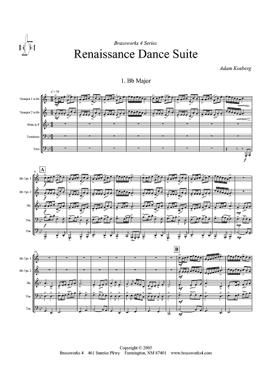 Digital Sheet Music for Renaissance Dance Suite - Score by Adam Kosberg scored for Brass Quintet; id:357913