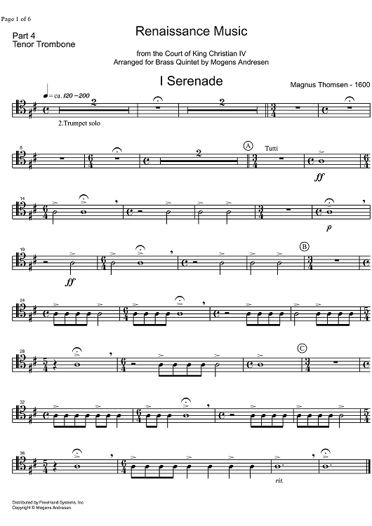 Digital Sheet Music for Renaissance Music - Tenor Trombone by , Mogens Andresen, Magnus Thomsen scored for Brass Quintet; id:326859