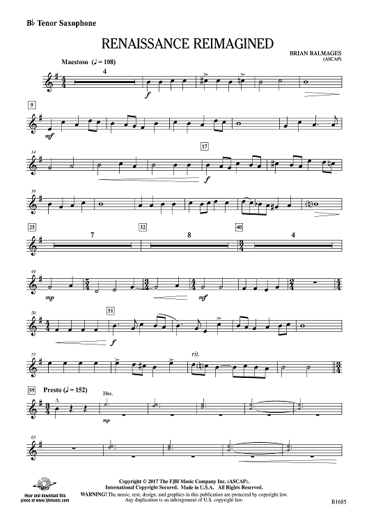 "Renaissance Reimagined - Bb Tenor Saxophone" Sheet Music by Brian Balmages