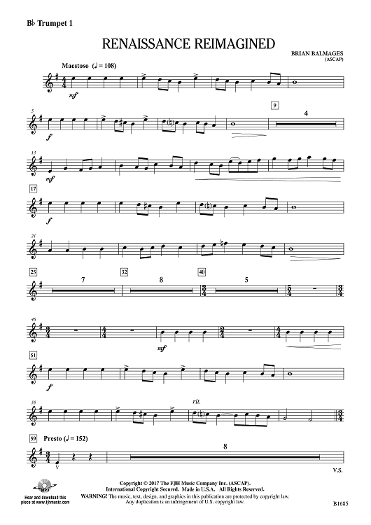 "Renaissance Reimagined - Bb Trumpet 1" Sheet Music by Brian Balmages