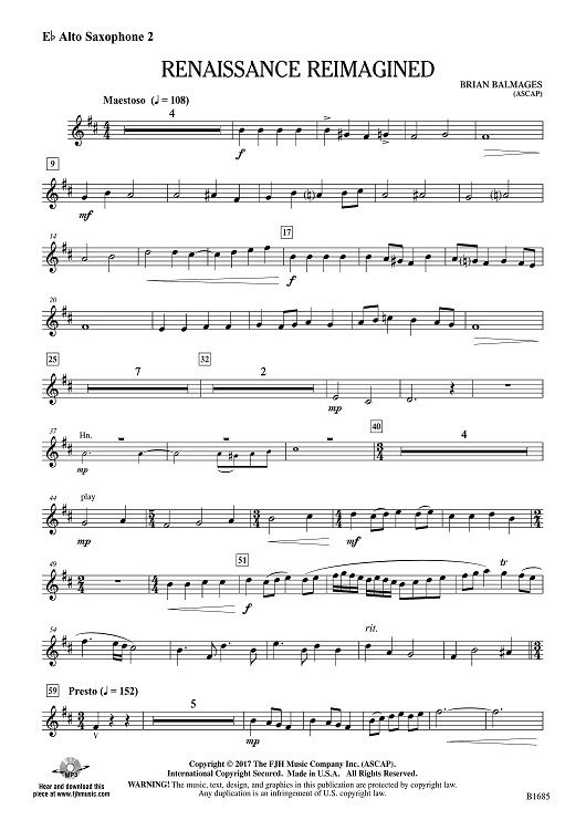 "Renaissance Reimagined - Eb Alto Saxophone 2" Sheet Music by Brian Balmages