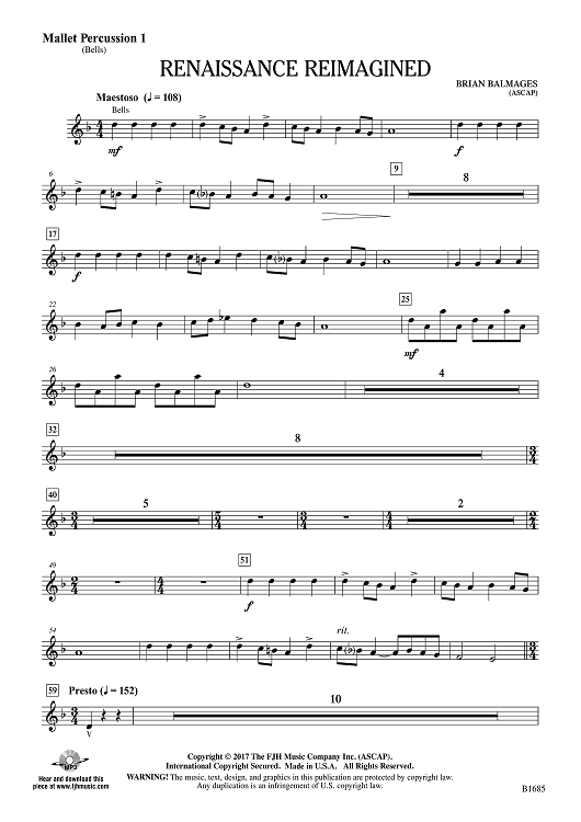 Digital Sheet Music for Renaissance Reimagined - Mallet Percussion 1 by Brian Balmages scored for Concert Band; id:510255