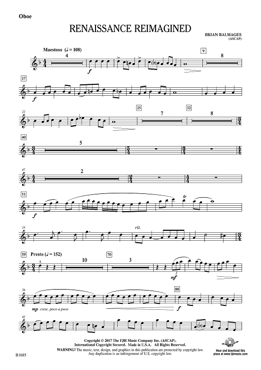 "Renaissance Reimagined - Oboe" Sheet Music by Brian Balmages