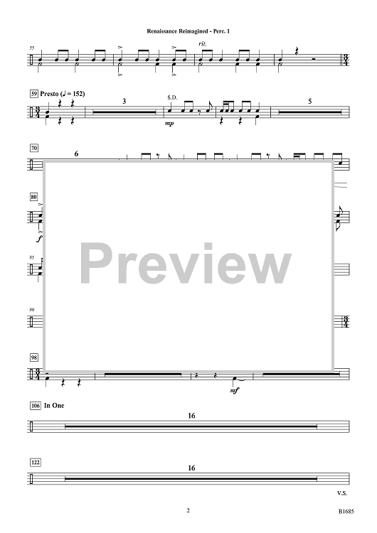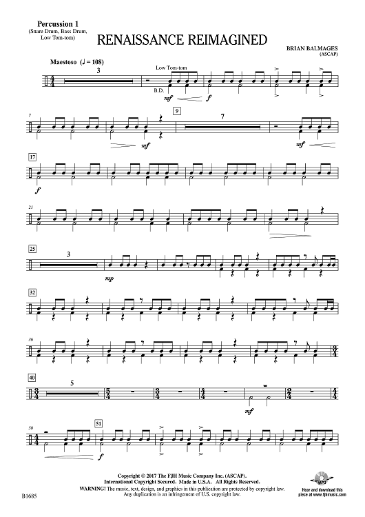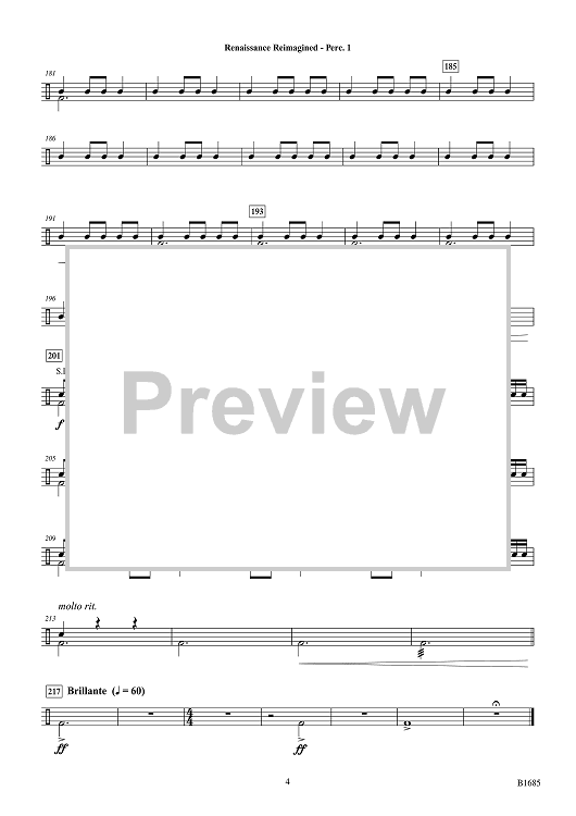 Digital Sheet Music for Renaissance Reimagined - Percussion 1 by Brian Balmages scored for Concert Band; id:510257
