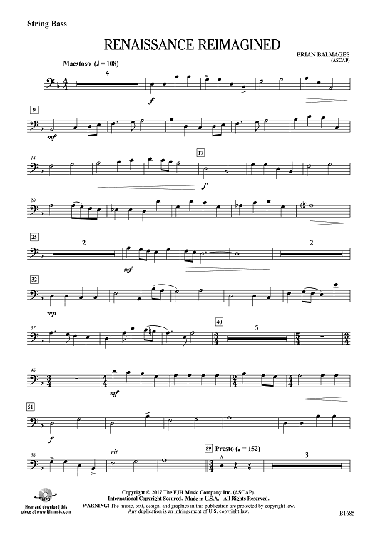 Digital Sheet Music for Renaissance Reimagined - String Bass by Brian Balmages scored for Concert Band; id:510253