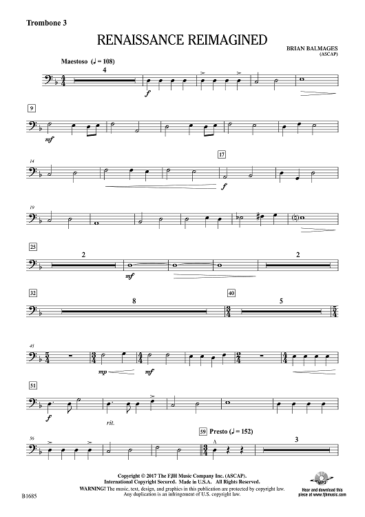 "Renaissance Reimagined - Trombone 3" Sheet Music by Brian Balmages