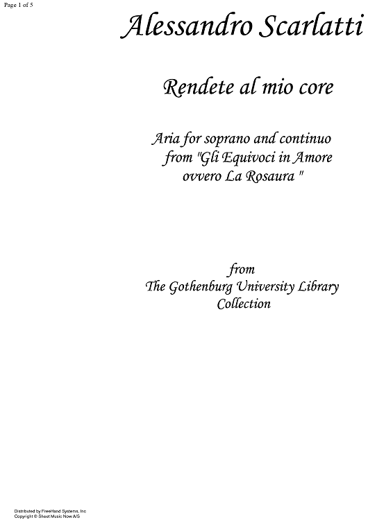 "Rendete al mio core" Sheet Music by Alessandro Scarlatti