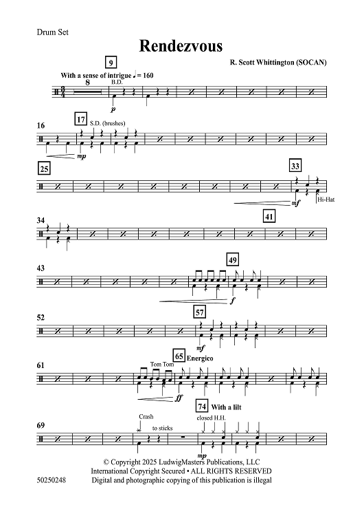"Rendezvous - Drum Set" Sheet Music by R. Scott Whittington