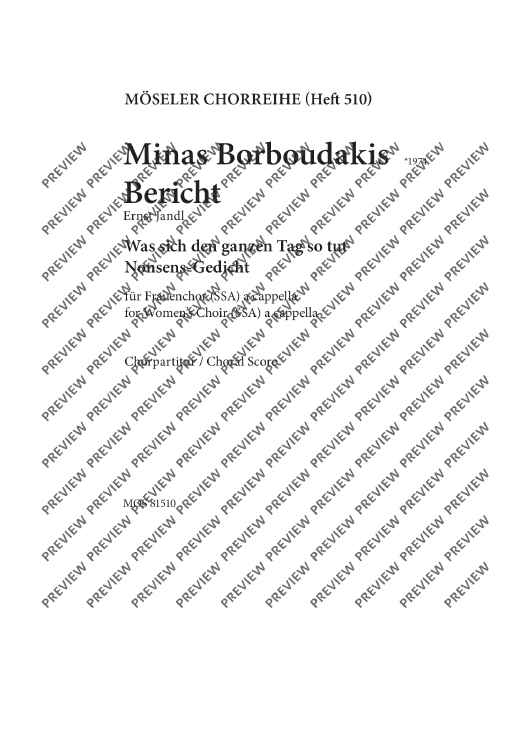 Digital Sheet Music for Report - Choral Score by Minas Borboudakis scored for Female Choir (ssa) A Cappella; id:496685