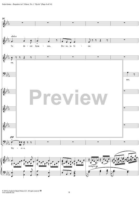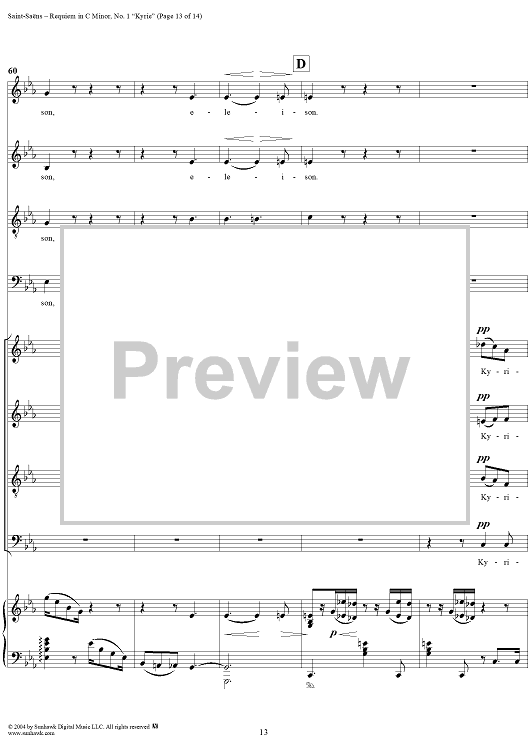 Digital Sheet Music for Requiem in C Minor, Op. 54: No. 1, Kyrie by Camille Saint-Saëns scored for Soli, Chorus and Piano; id:304690
