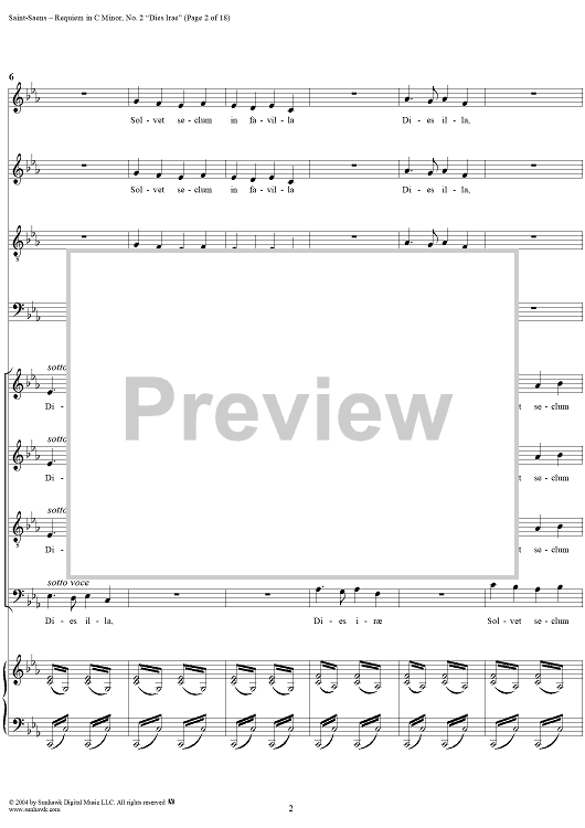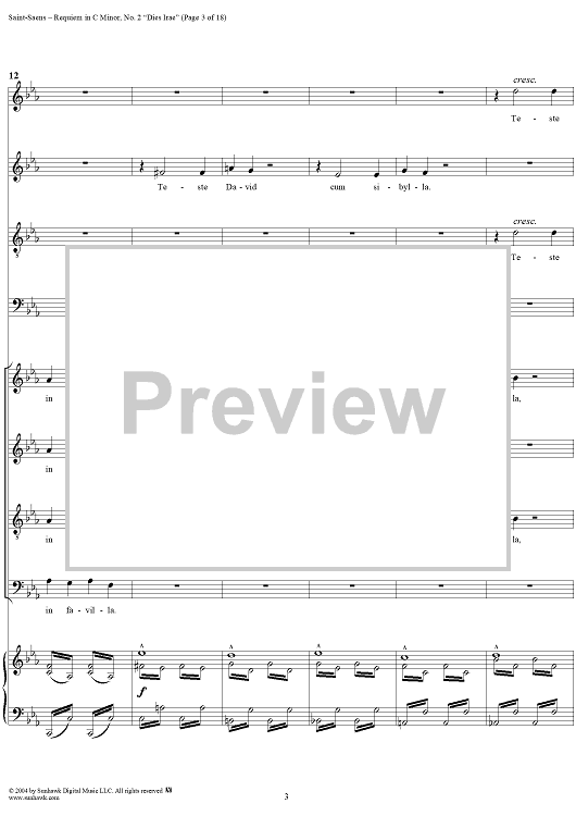 Digital Sheet Music for Requiem in C Minor, Op. 54: No. 2, Dies Irae by Camille Saint-Saëns scored for Soli, Chorus and Piano; id:304691