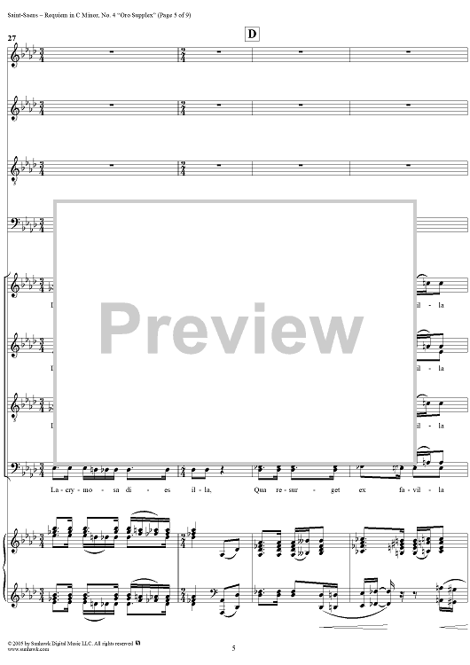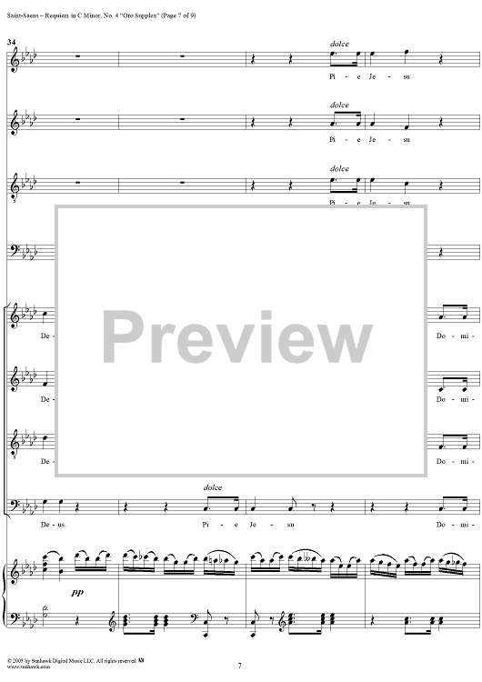Digital Sheet Music for Requiem in C Minor, Op. 54: No. 4, Oro Supplex by Camille Saint-Saëns scored for Soli, Chorus and Piano; id:304693