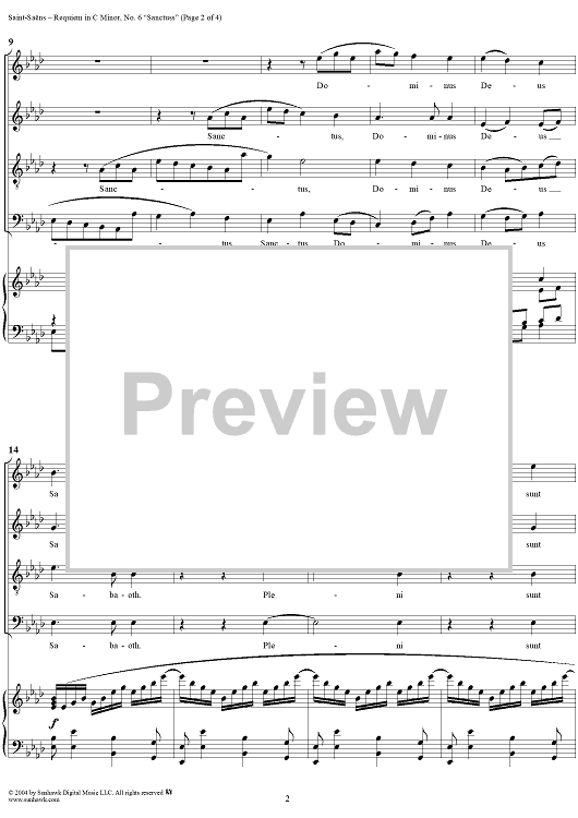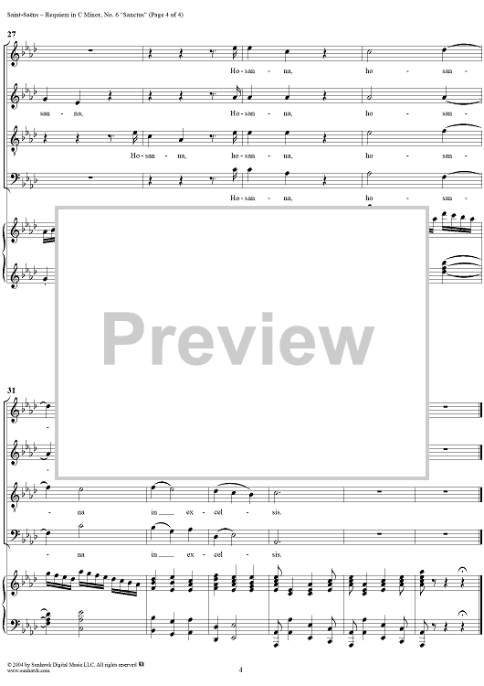 Digital Sheet Music for Requiem in C Minor, Op. 54: No. 6, Sanctus by Camille Saint-Saëns scored for Soli, Chorus and Piano; id:304695