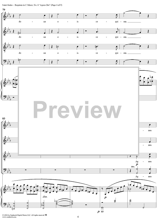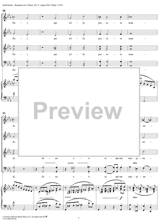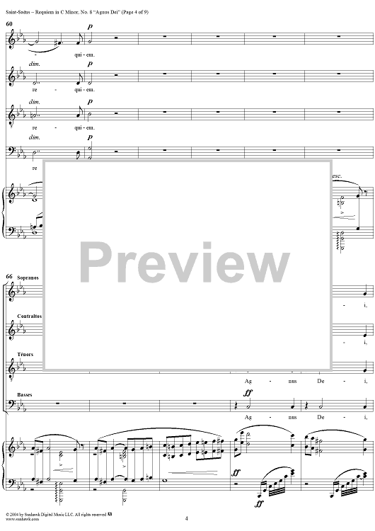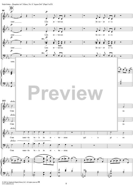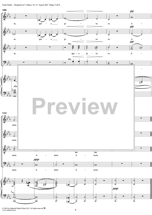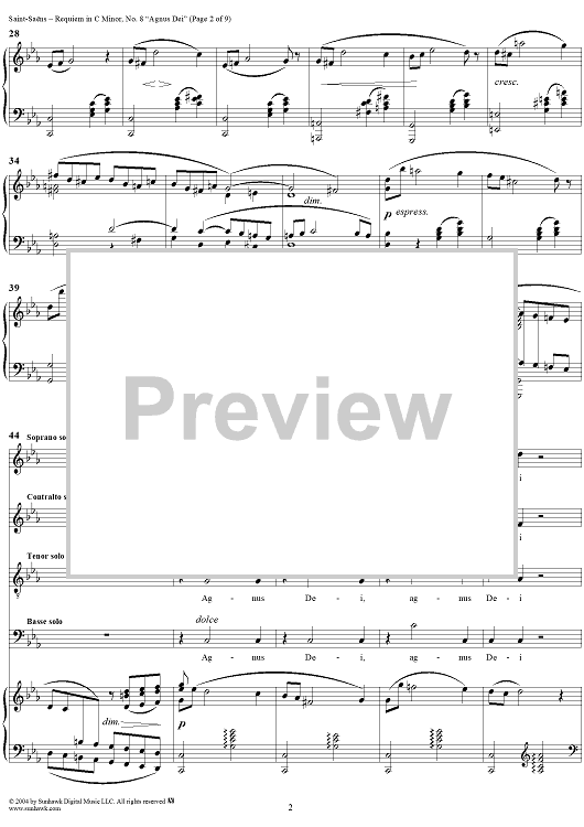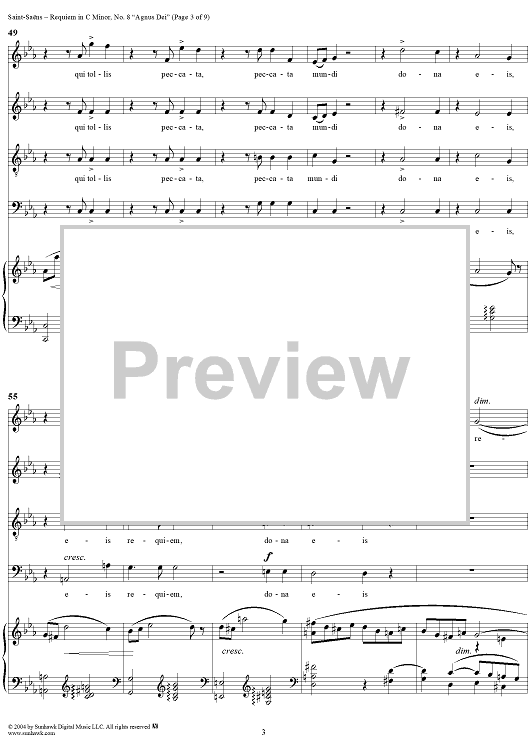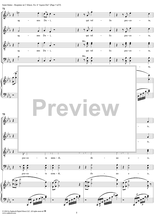 Digital Sheet Music for Requiem in C Minor, Op. 54: No. 8, Agnus Dei by Camille Saint-Saëns scored for Soli, Chorus and Piano; id:304697