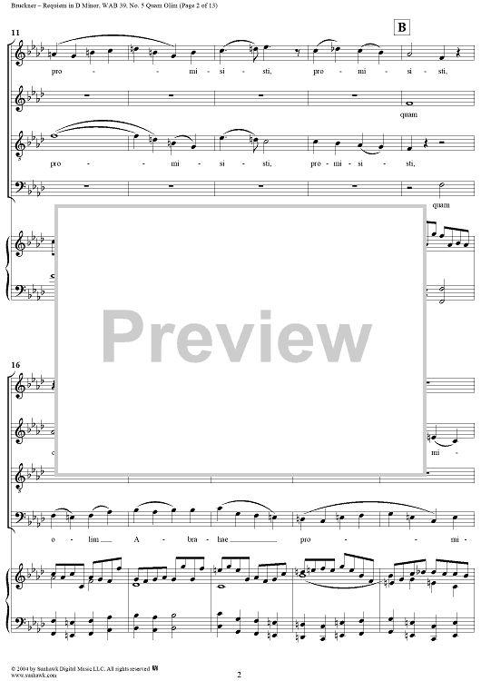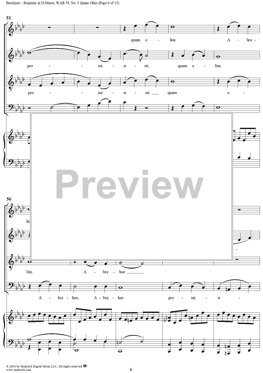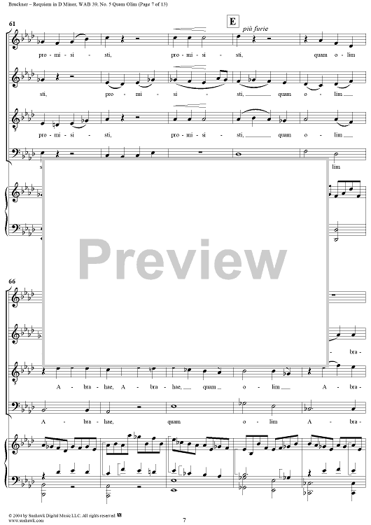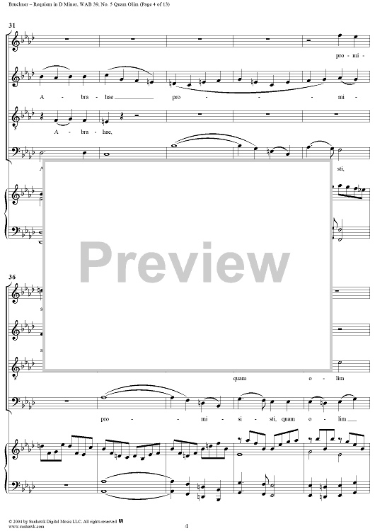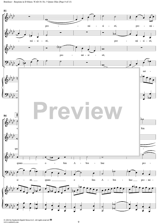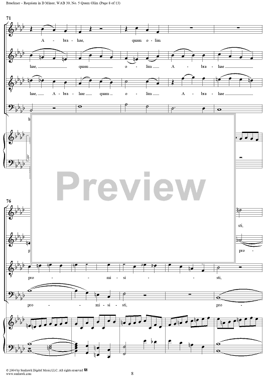 Digital Sheet Music for Requiem in D Minor, No. 5: Quam Olim by Anton Bruckner scored for Four-part Mixed Chorus/Piano; id:303402