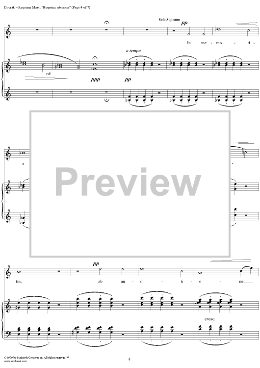 Digital Sheet Music for Requiem Mass, op. 89, no. 2: Requiem aeternam by Antonín Dvorák scored for Vocal Score; id:118528
