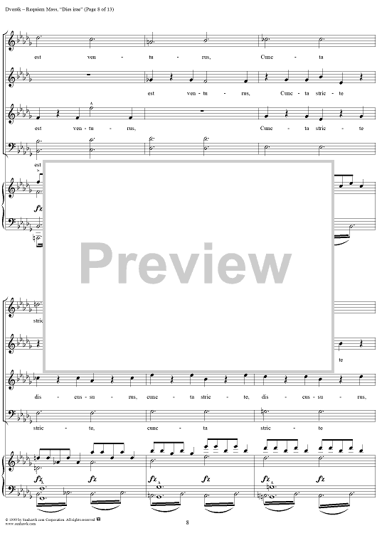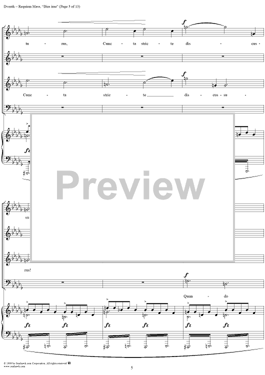 Digital Sheet Music for Requiem Mass, op. 89, no. 3: Dies Irae by Antonín Dvorák scored for Vocal Score; id:118507