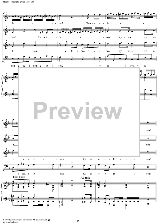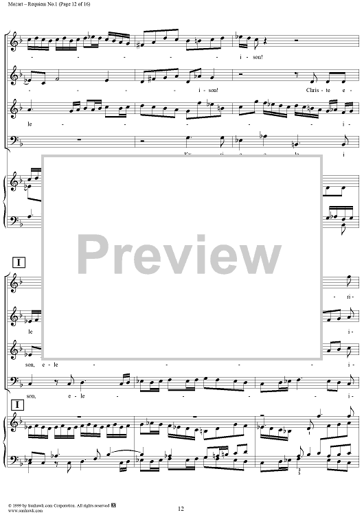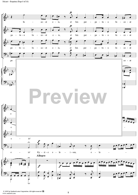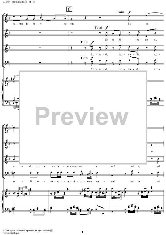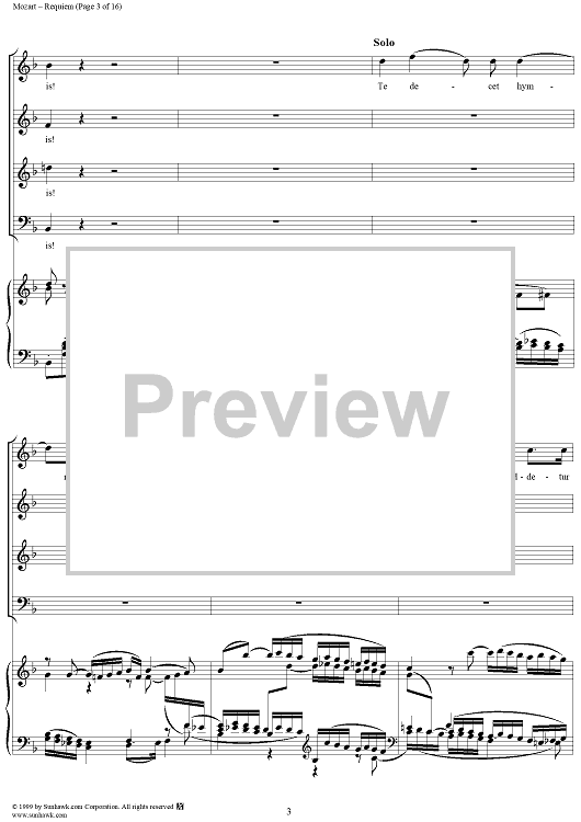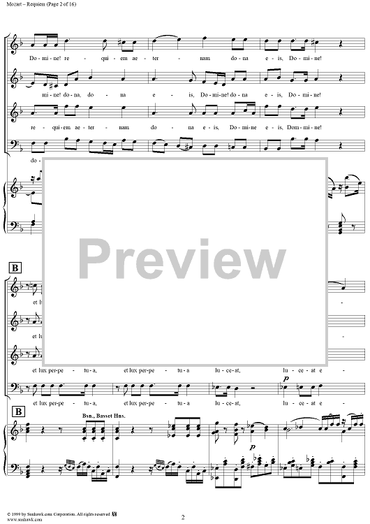 Digital Sheet Music for Requiem - No. 1 from "Requiem" K626 by Wolfgang Amadeus Mozart scored for Four-part Mixed Chorus/Piano; id:252576