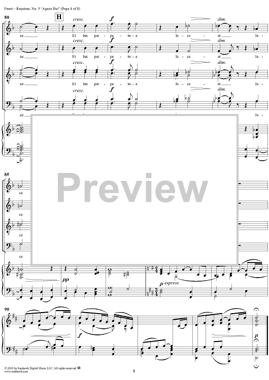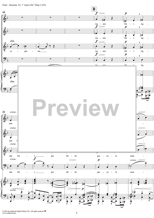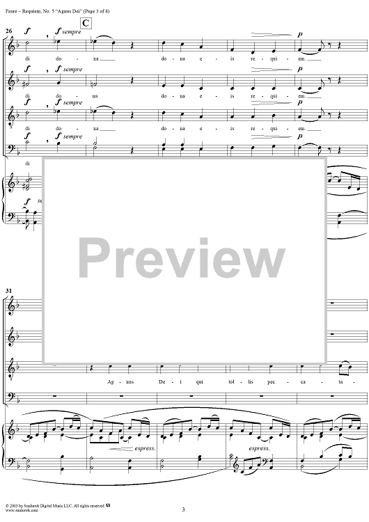 Digital Sheet Music for Requiem, Op. 48, No. 5: Agnus Dei by Gabriel Fauré scored for SATB/Piano; id:294407