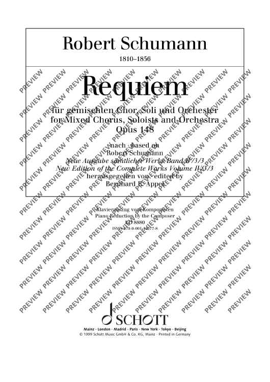 Digital Sheet Music for Requiem - Piano Reduction by Robert Schumann scored for Mixed Choir (satb), Soloists (satb) And Orchestra; id:496746