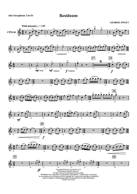 Digital Sheet Music for Residuum - Alto Saxophone 2 by George Sweet scored for Concert Band; id:435708