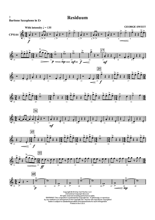 "Residuum - Baritone Sax" Sheet Music by George Sweet