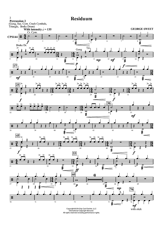 Digital Sheet Music for Residuum - Percussion 2 by George Sweet scored for Concert Band; id:435725