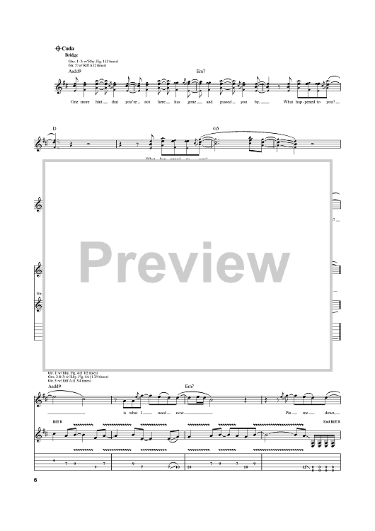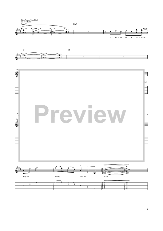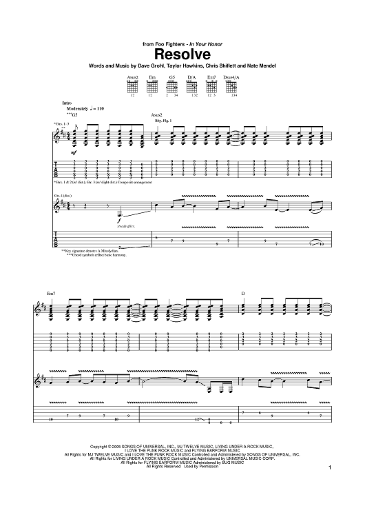 Digital Sheet Music for Resolve by Foo Fighters, Dave Grohl, Taylor Hawkins, Nate Mendel, Chris Shiflett scored for Guitar Tab; id:386767