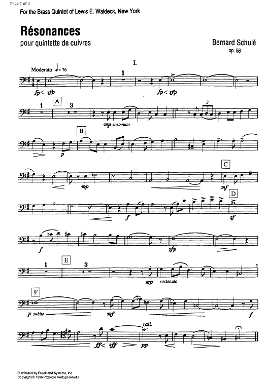 Digital Sheet Music for Résonances Op.58 - Tenor Trombone by , Bernard Schulé scored for Brass Quintet; id:330744