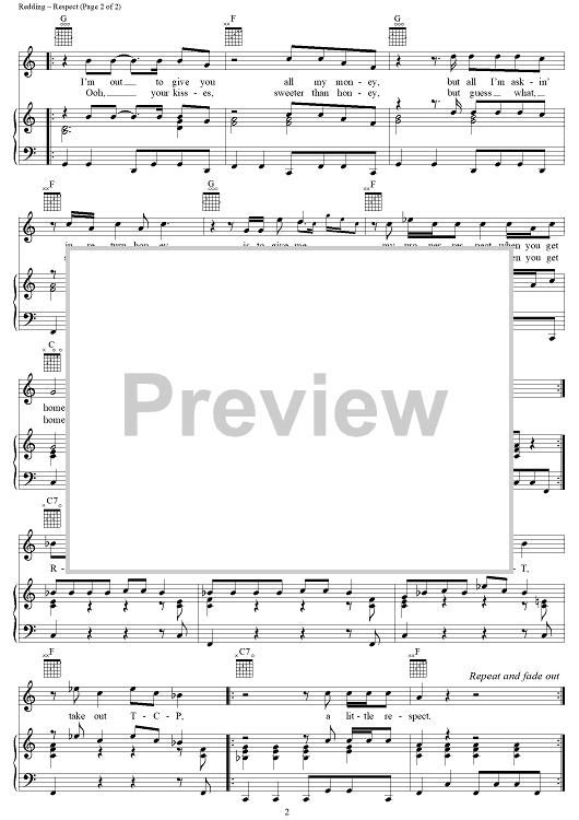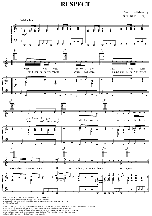 Digital Sheet Music for Respect by Otis Redding, Aretha Franklin scored for Piano/Vocal/Chords; id:114141