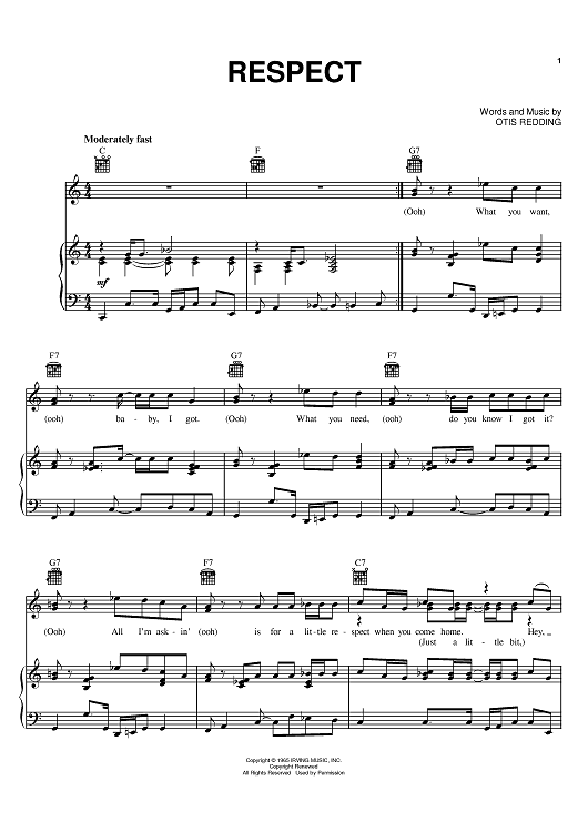 Digital Sheet Music for Respect by Otis Redding, Aretha Franklin scored for Piano/Vocal/Chords; id:371876