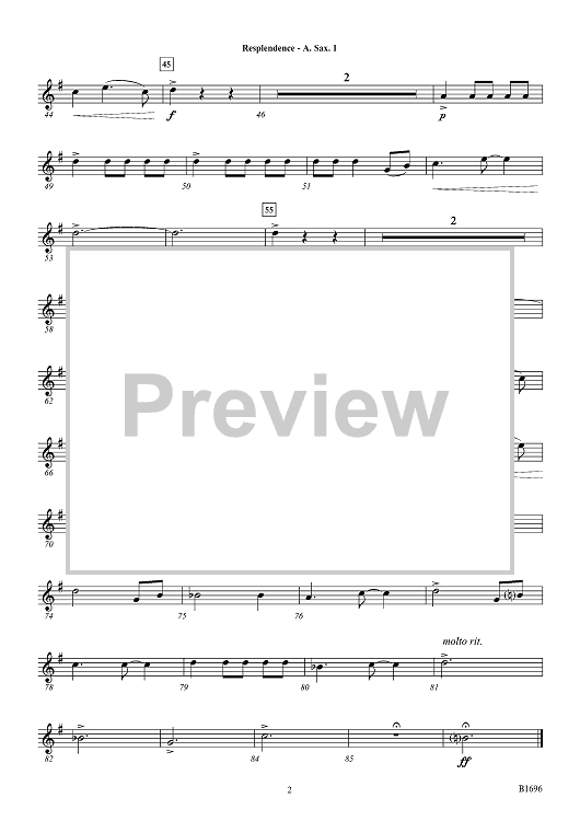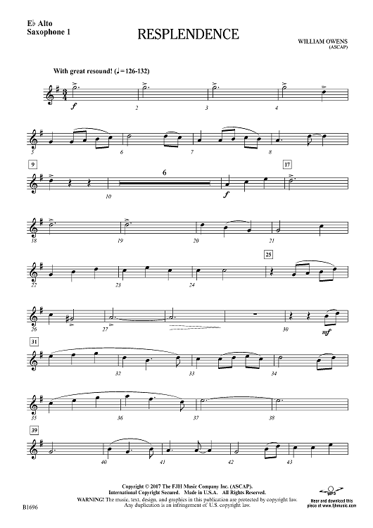 Digital Sheet Music for Resplendence - Eb Alto Sax 1 by William Owens scored for Concert Band; id:500704