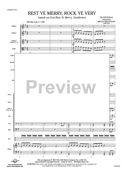 Digital Sheet Music for Rest Ye Merry, Rock Ye Very - Score by Traditional, Brian Balmages scored for String Orchestra; id:437099