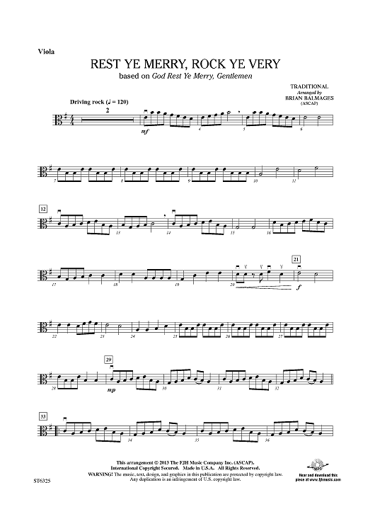 Digital Sheet Music for Rest Ye Merry, Rock Ye Very - Viola by Traditional, Brian Balmages scored for String Orchestra; id:437103